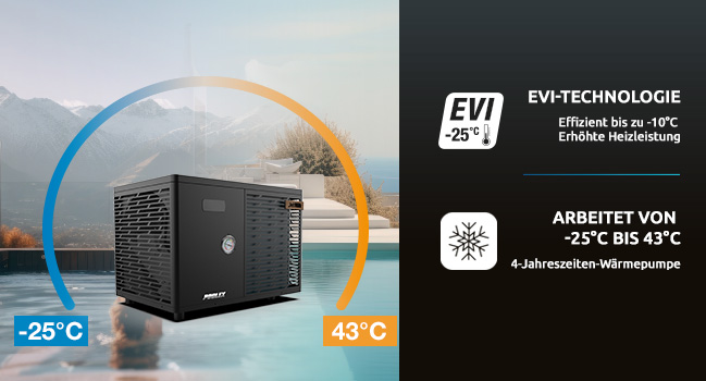 Die EVI (Enhanced Vapor Injection)-Technologie verbessert die Energieeffizienz von Wärmepumpensystemen, indem sie bei niedrigen Umgebungstemperaturen zusätzlichen Dampf in den Kompressor einspritzt. Diese Technologie gewährleistet eine effiziente Leistung der Pumpe bis -10°C und eine erhöhte Heizleistung.