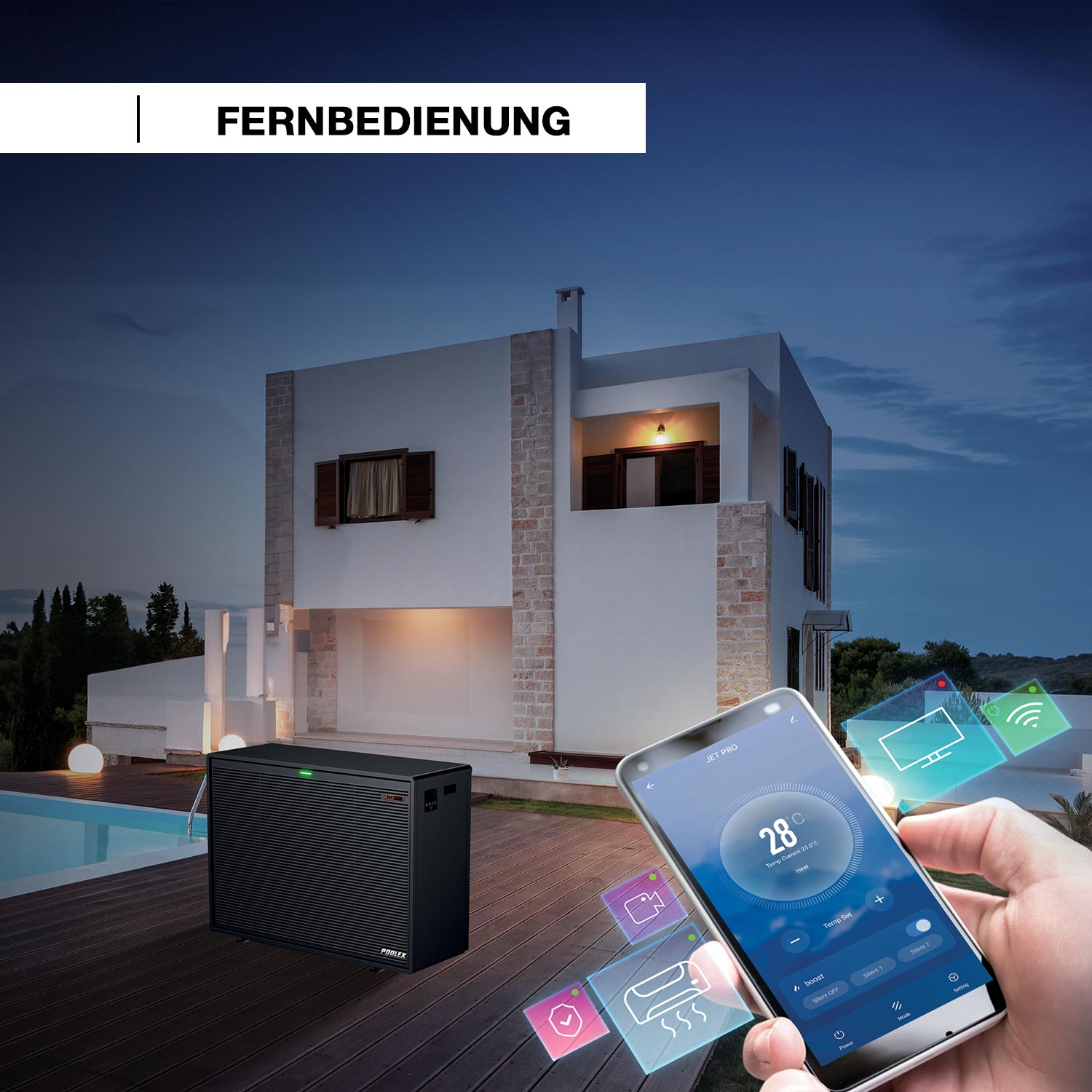 Die JET CITY Wärmepumpe verbindet sich direkt mit Ihrem Wi-Fi und lässt sich vollständig über die POOLEX-App fernsteuern. Greifen Sie auf alle Einstellungen Ihrer Pumpe über Ihr Smartphone zu, passen Sie Parameter wie Wassertemperatur an oder programmieren Sie Heizzyklen, um Energie zu sparen. Sie erhalten auch Benachrichtigungen und Alarme für eine optimale Überwachung Ihrer Ausrüstung.