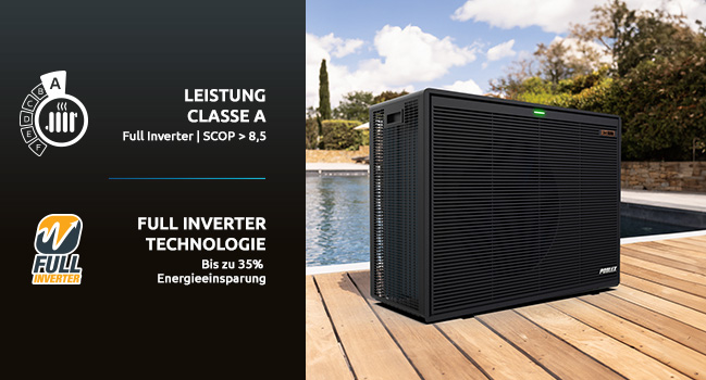Mit der FULL INVERTER-Technologie und einer weiterentwickelten Konstruktion erreicht die POOLEX JET MAX eine hervorragende SCOP A-Bewertung von 8,5, bestätigt durch ein unabhängiges Labor.