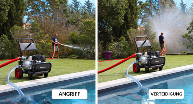 | Druck/Durchfluss nach 25 m Schlauch | 7 Bar / 16 m3/h | |