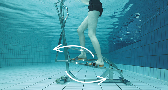 Das Schwimm-Ellipsentraining Elly beansprucht mehr als 80% der Körpermuskulatur dank der synchronen Bewegung von Beinen und Armen.