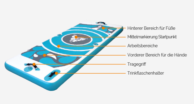 Mithilfe des Aufdrucks auf der EVAC-Beschichtung können die Nutzer die während des Kurses genannten Trainingsbereiche identifizieren.