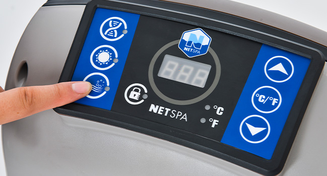 Der einfach zu installierende Motorblock lässt sich über ein intuitives Digitaldisplay steuern. Jeder Knopf hat seine eigene Funktion: das Aufblasen der Whirlpoolstruktur, die Regulierung der Wassertemperatur, die Steuerung der Filterung und die Verteilung der entspannenden Blasen im gesamten Spa.