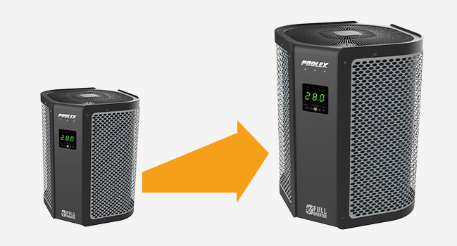 Die Full-Inverter-Wärmepumpe arbeitet daher stabiler. Der Kompressor verhindert ein ungewolltes Starten und Stoppen. All das bei einer Energieeinsparung von über 35% im Vergleich zu einer ON/OFF Pool-Wärmepumpe.