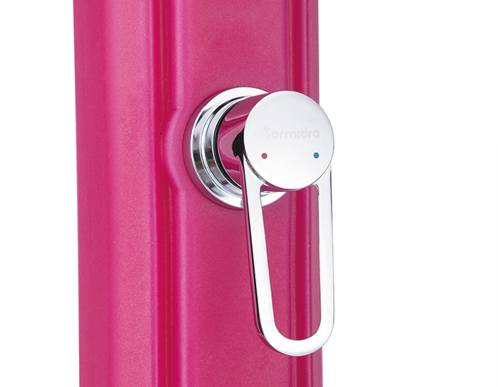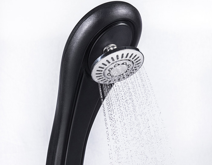 Fabriquée en PEHD recyclable, elle est équipée de série d’un mitigeur chaud / froid, d’un rince-pieds ainsi que d’une nouvelle pomme de douche plus large pour un effet pluie plus intense.