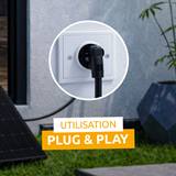 Reliez les panneaux au micro-onduleur via les câbles MC4 fournis, puis branchez le câble d'alimentation sur la prise 230V.