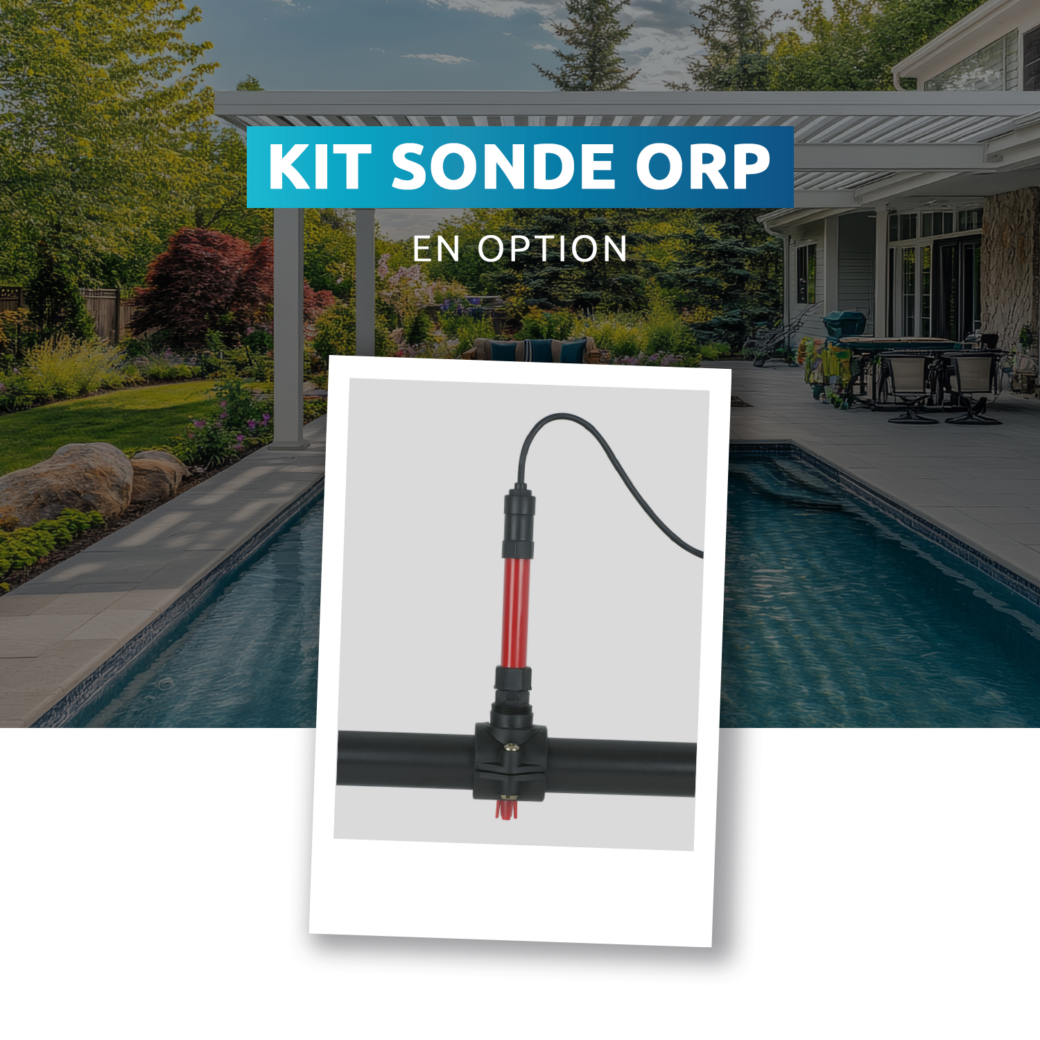 Mode ORP (en option) : régulation automatique selon le potentiel redox pour une désinfection toujours maîtrisée.